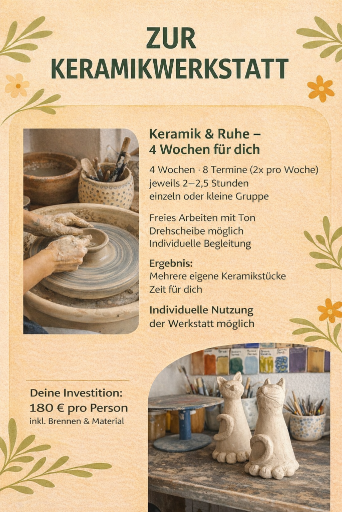 Dann seid ihr in unserer kleinen Keramikwerkstatt im Ferienhof am Trift genau richtig. 💛